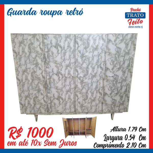 Cômoda branca com 4 gavetas e prateleiras laterais