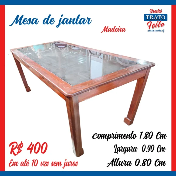 Mesa madeira com tampô de vidro